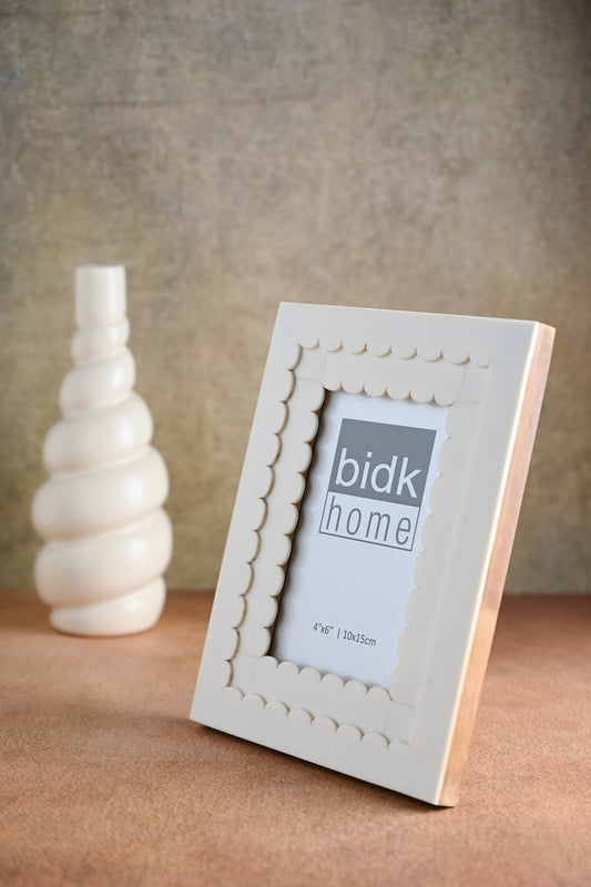 White Resin Frame With Flower Design